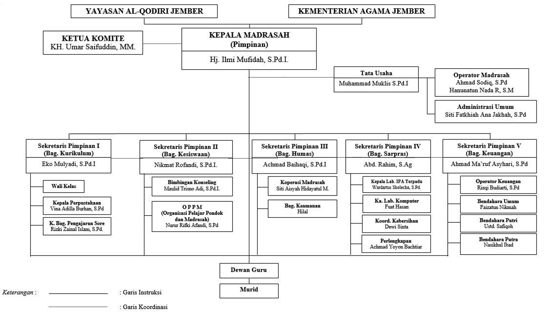 Struktur organisasi MTs. "UNGGULAN" AL-QODIRI I JEMBER dirancang untuk mendukung pencapaian tujuan sekaligus membuka peluang pertumbuhan di masa depan